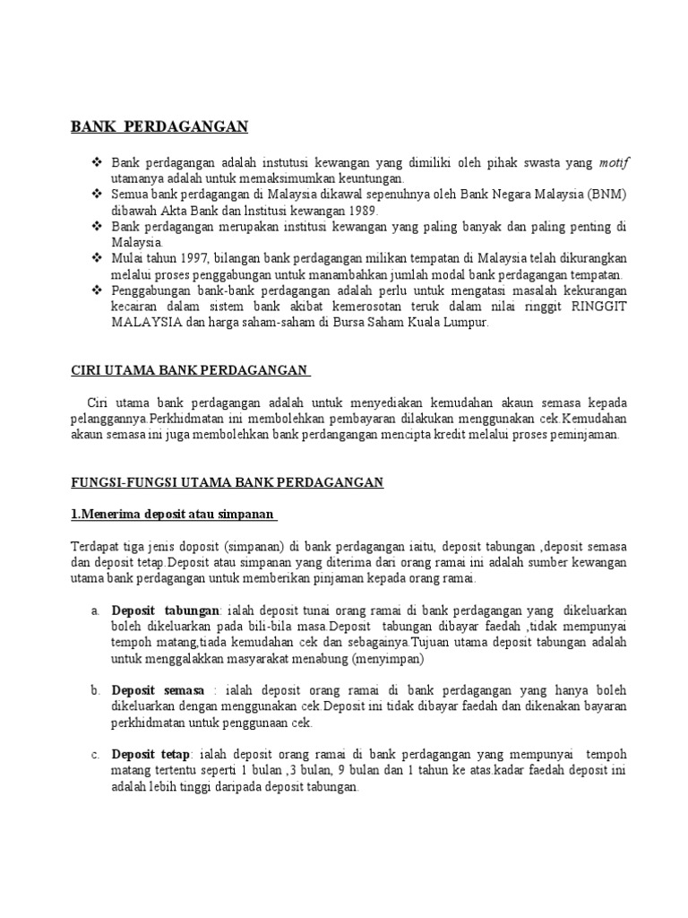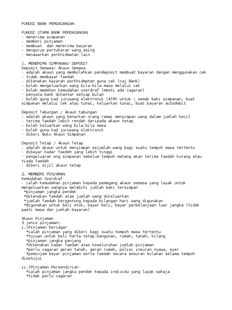 Fungsi Bank Di Malaysia. How why when fungsi bank perdagangan menerima deposit akaun simpanan atau akaun tabungan akaun simpanan atau akaun tabungan akaun simpanan tetap akaun simpanan tetap akaun semasa akaun semasa memberi pinjaman what overdraf overdraf pinjaman peribadi atau persendirian pinjaman iq. JENIS AKAUN JENIS KEMUDAHAN PEMBAYARAN Add to my workbooks 0.